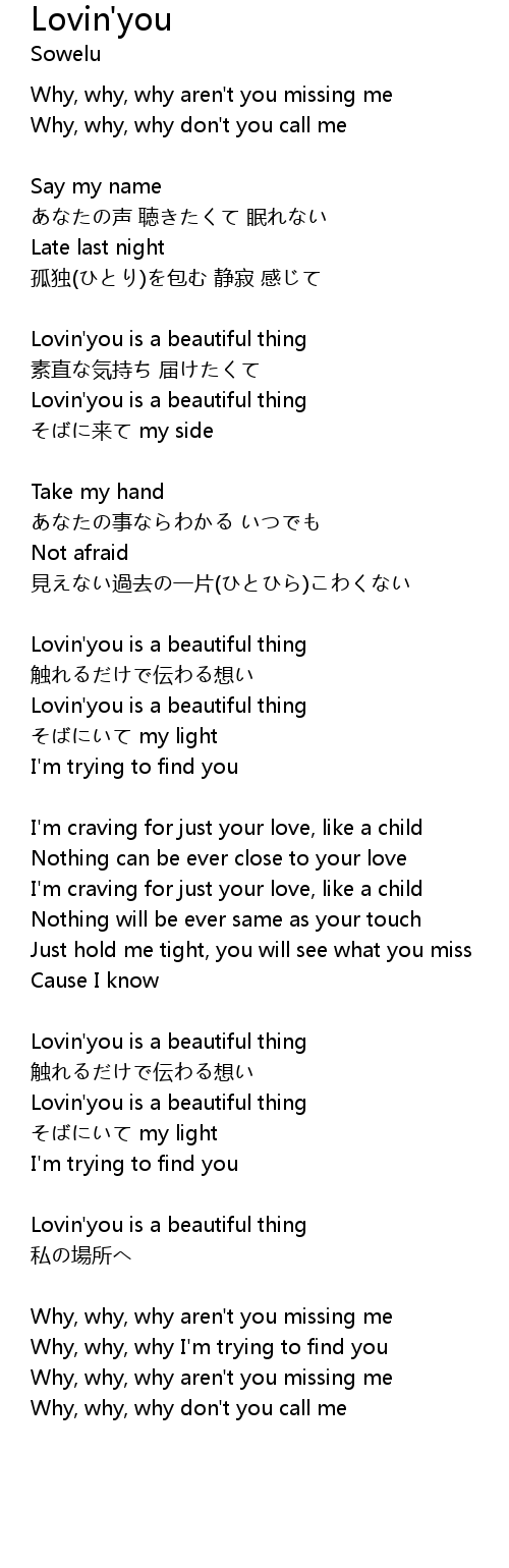 | Lovin'you is a beautiful thing | |
