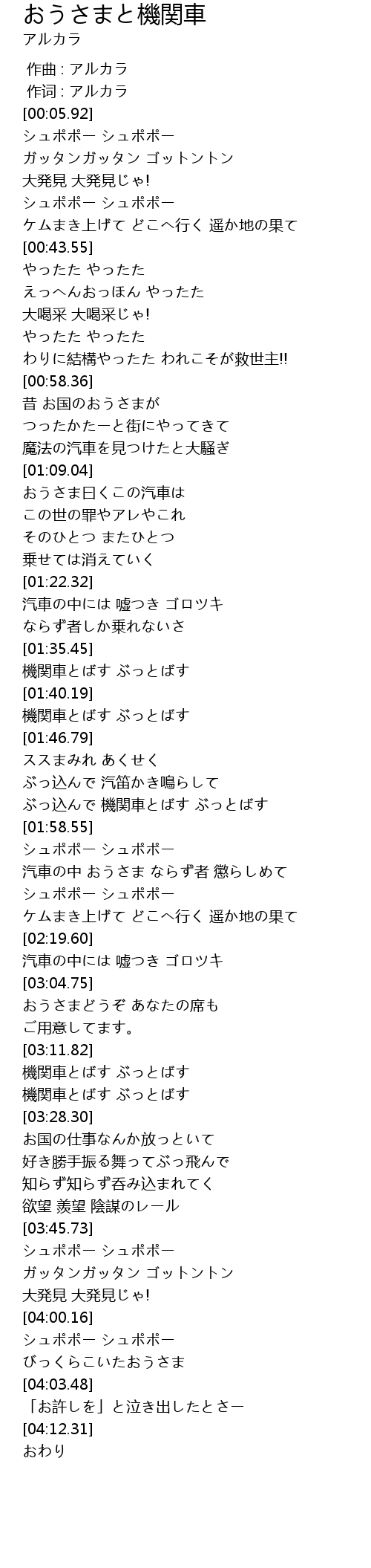 | [03:23.79] | 機関車とばす ぶっとばす |