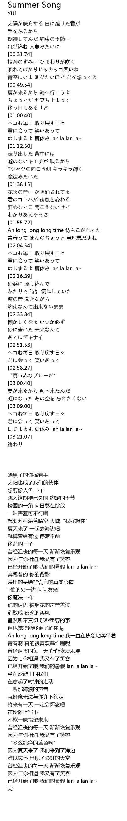 | [03:16.02] | はじまるよ 夏休み lan la lan la~ |
