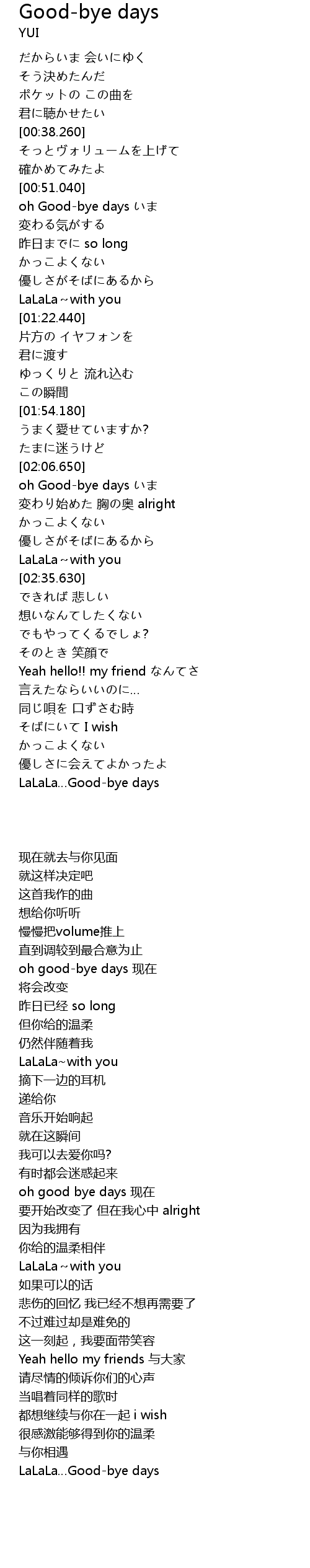 | [03:47.600] | LaLaLa Goodbye days |