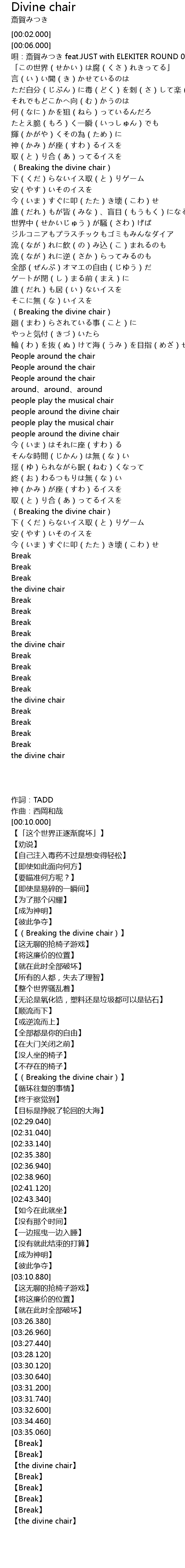 | [03:32.600] | the divine chair |
