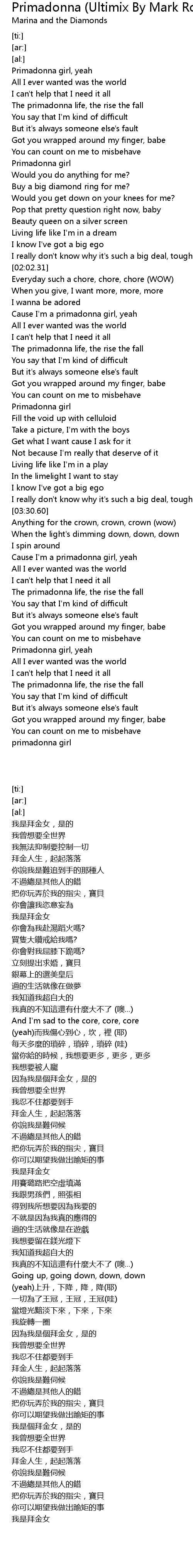 Cause I'm a primadonna girl, yeah |