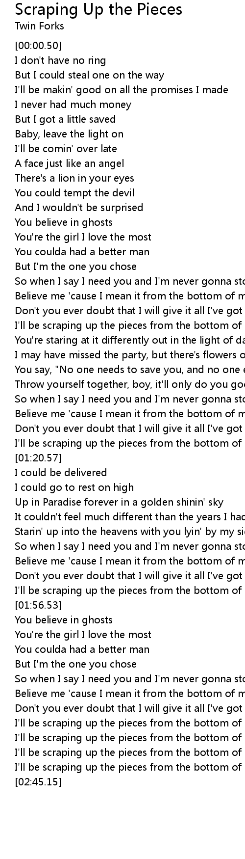 I'll be scraping up the pieces from the bottom of my heart |