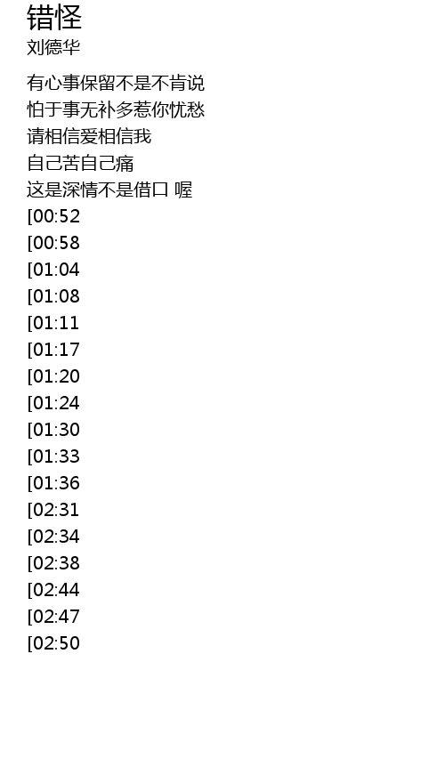| [02:05][00:52] | 不多说承诺 不是爱不够 |