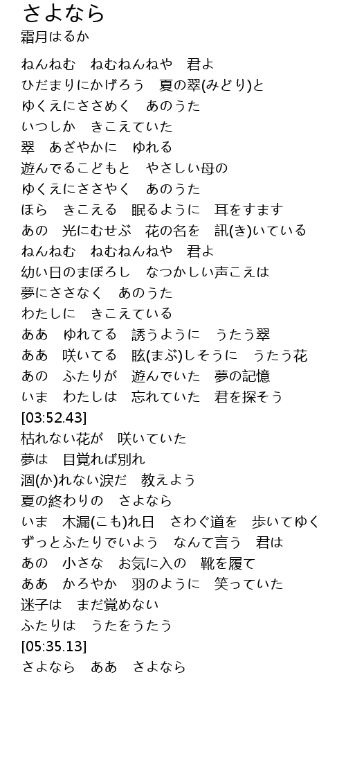 | [00:00.00] | ねんねむ ねむねんねや 君よ |