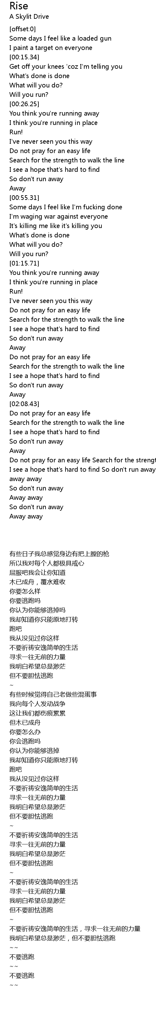 I see a hope that's hard to find So don't run away |