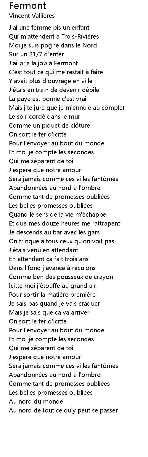 | [00:19.93] | Moi je suis pogné dans le Nord |