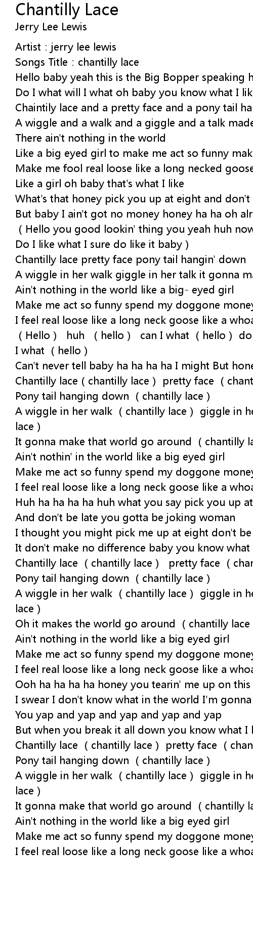 | Chantilly lace chantilly lace pretty face chantilly lace | |