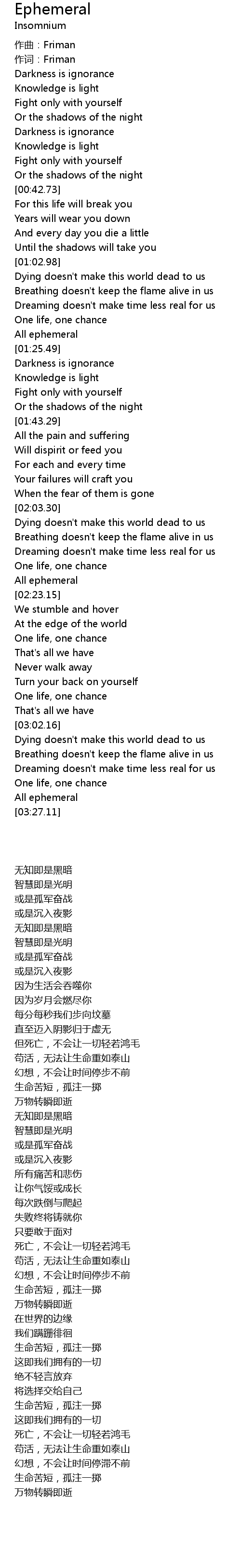 | [03:18.77] | One life, one chance |