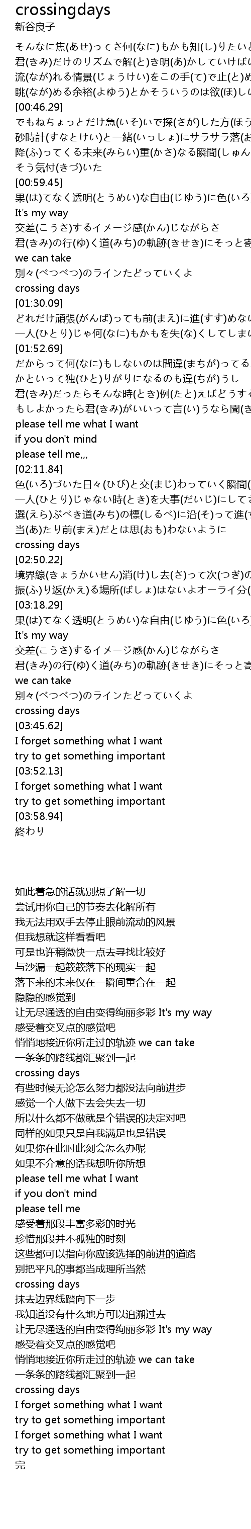 | [03:18.77] | 果(は)てなく透明(とうめい)な自由(じゆう)に色(いろ)をつけていこう It's my way |