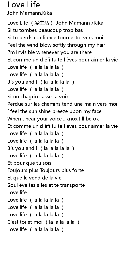 | [00:00.00] | Love Life ài shēng huó John Mamann Kika |