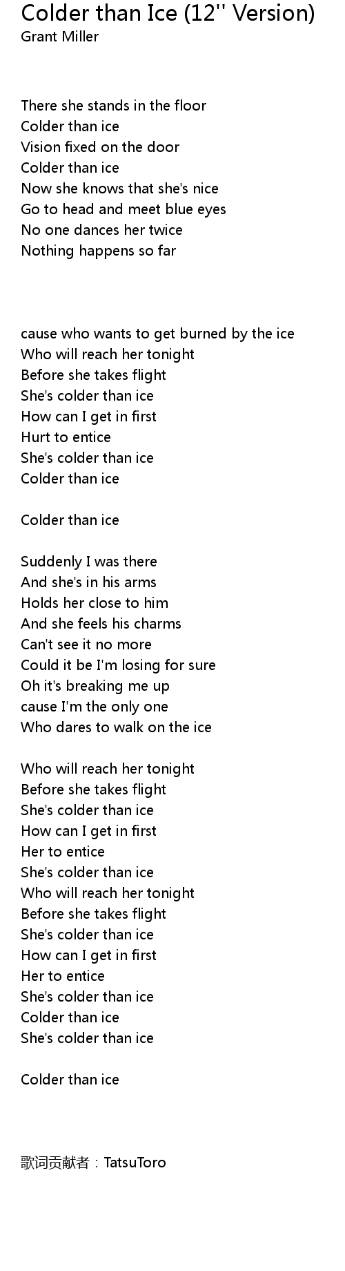 | [01:32.34] | Colder than ice |