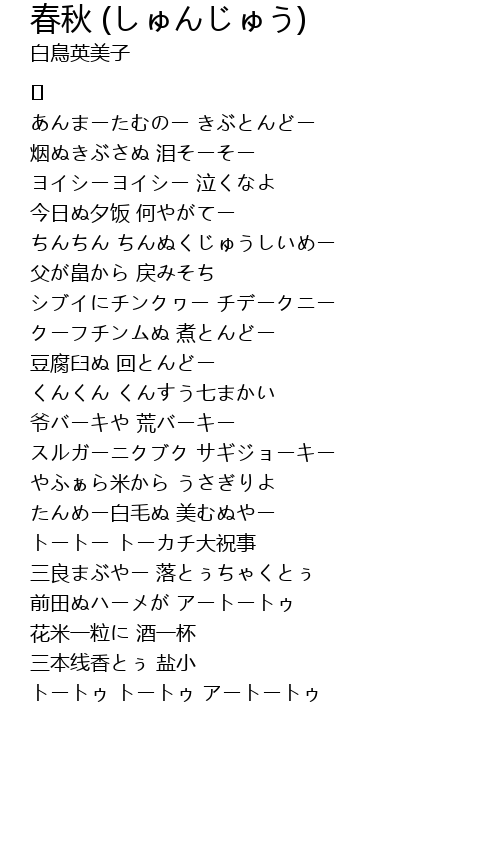 | Song | 春秋 (しゅんじゅう) |