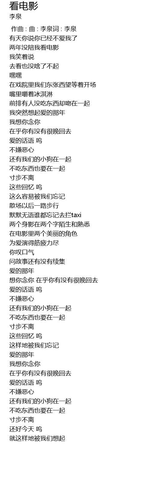 | [00:52.18] | liǎng nián méi péi wǒ kàn diàn yǐng |