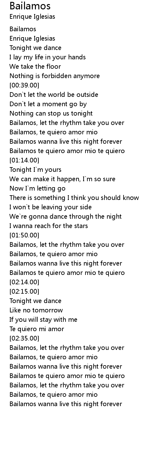 Bailamos te quiero amor mio te quiero |