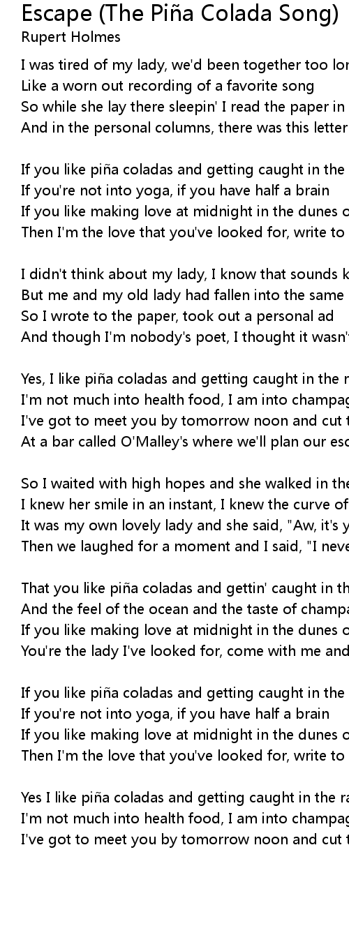 | Yes, I like pi a coladas and getting caught in the rain | |