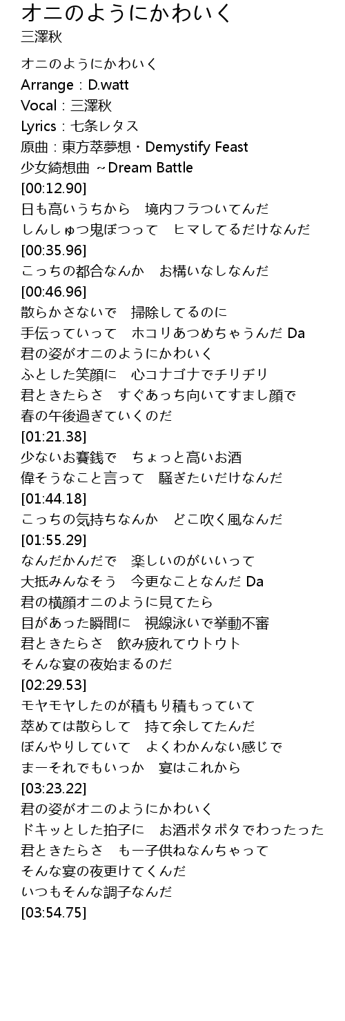 | [03:24.17] | 君の姿がオニのようにかわいく |