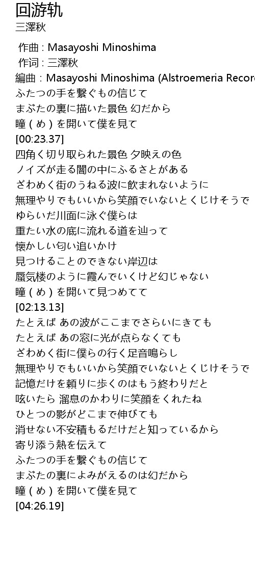 | [00:00.01] | 作词 : 三澤秋 |