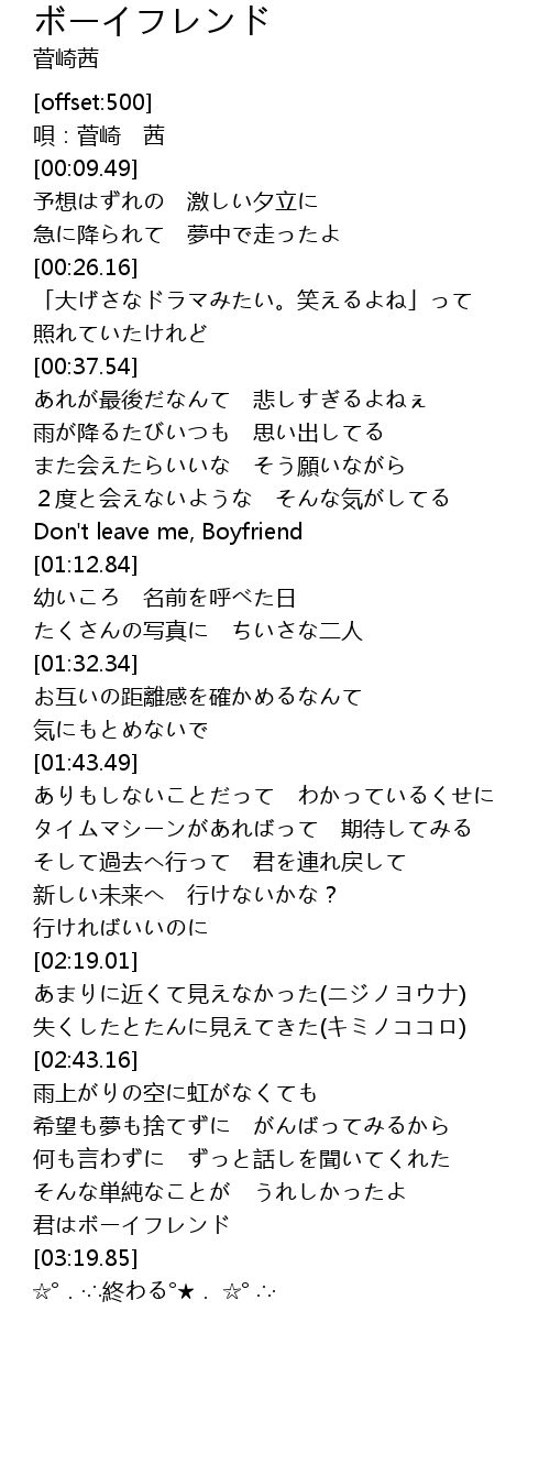 | [01:09.12] | Don' t leave me, Boyfriend |