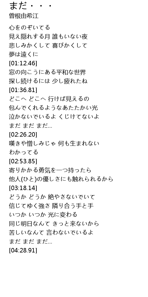 | [01:38.19] | どこへ どこへ 行けば見えるの |