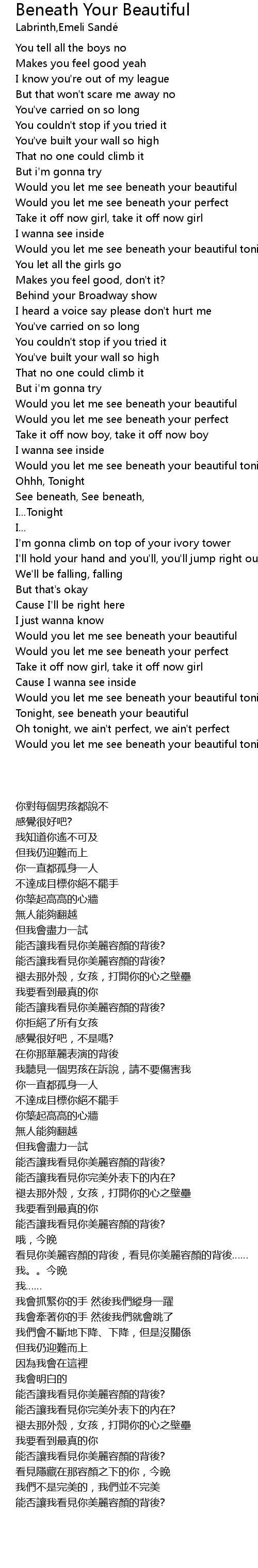 Beneath Your Beautiful Lyrics