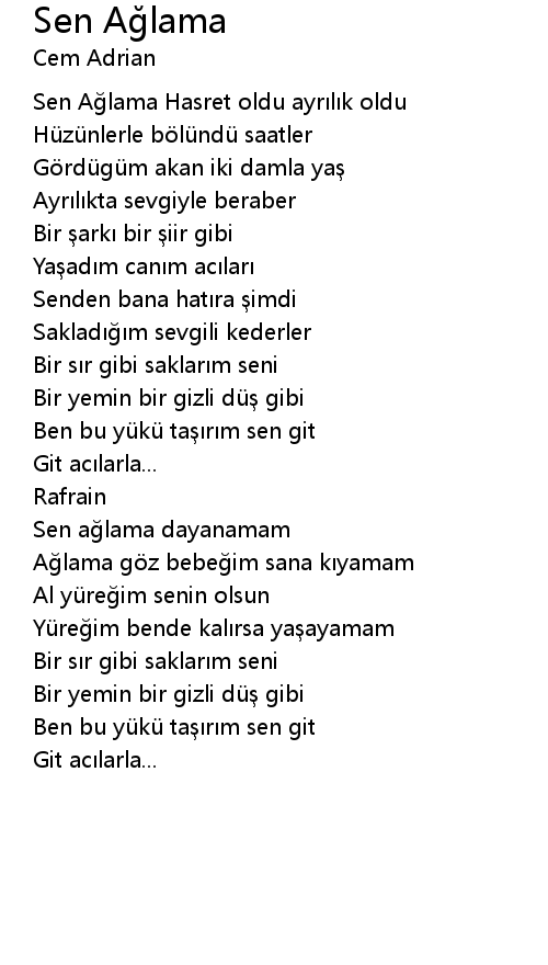 | Song | Sen Ağlama |