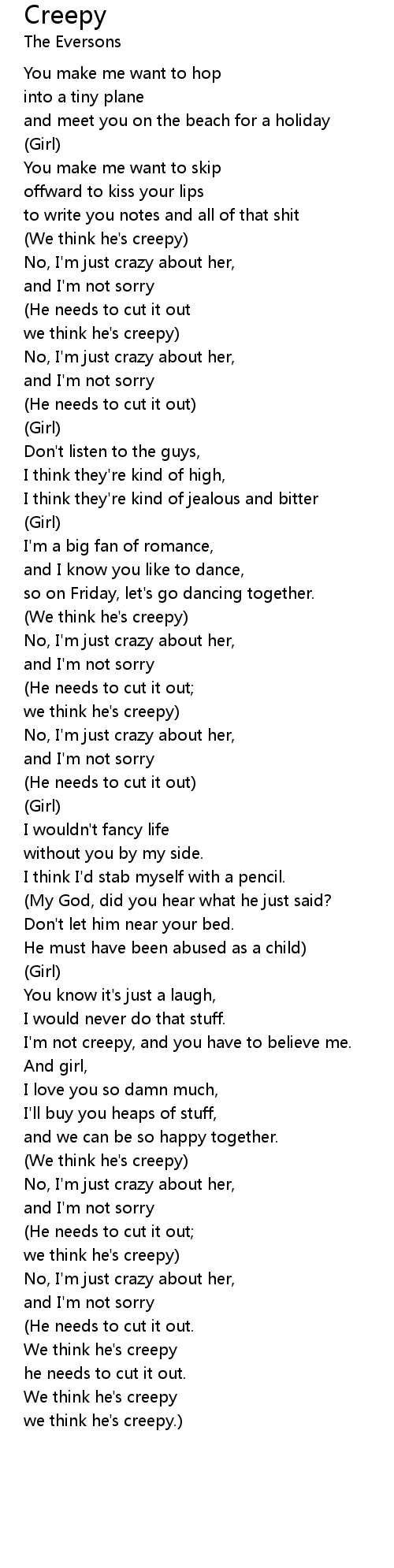 I'm not creepy, and you have to believe me. |