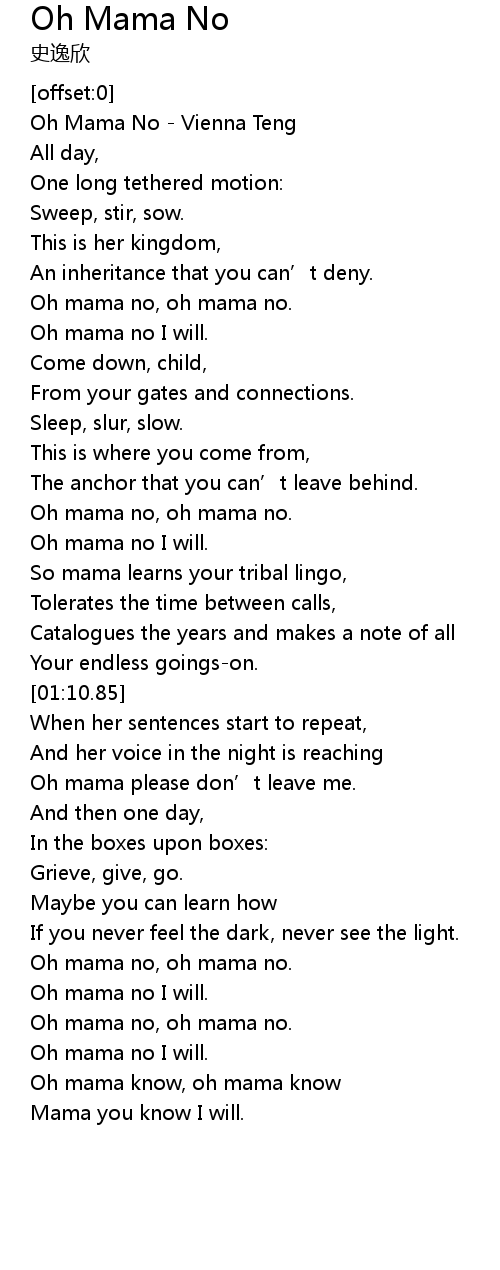 | [00:01.05] | Oh Mama No Vienna Teng |