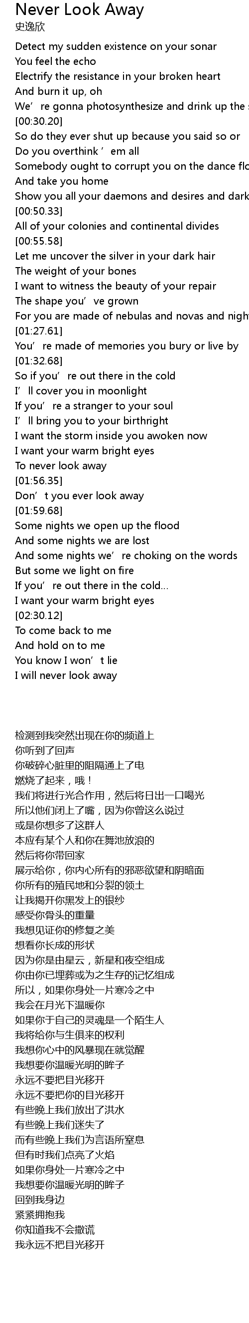 | [01:23.81] | For you are made of nebulas and novas and night sky |
