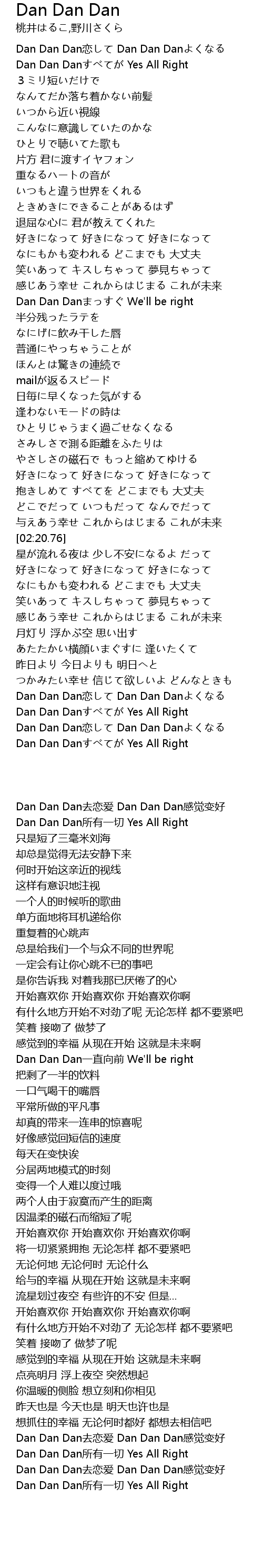 | [00:08.44] | Dan Dan Dan Yes All Right |