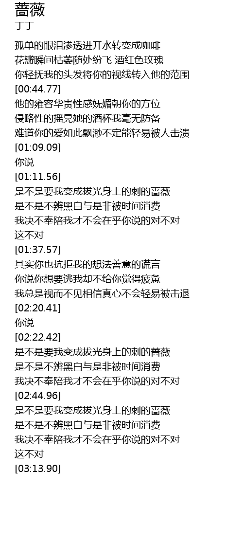 | [02:46.60] | 是不是要我变成拔光身上的刺的蔷薇 |