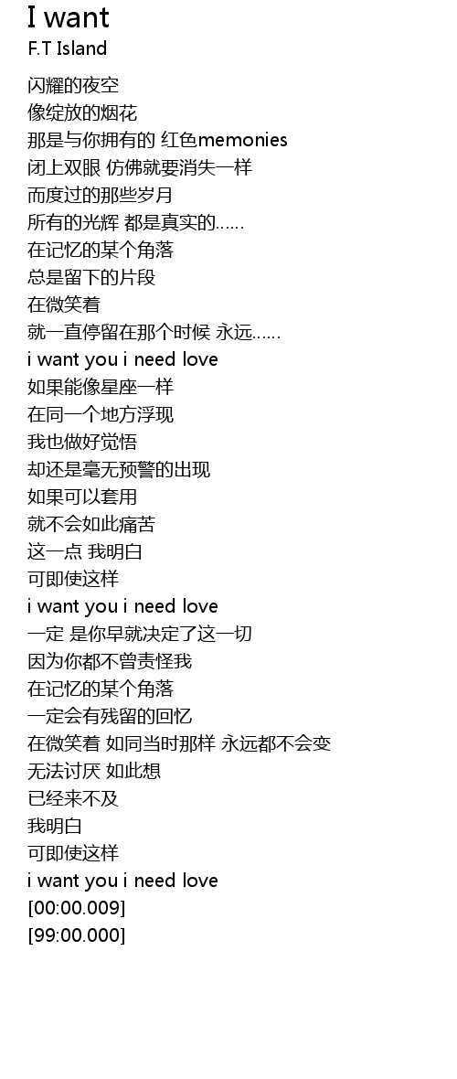 | [01:00.08] | i want you i need love |