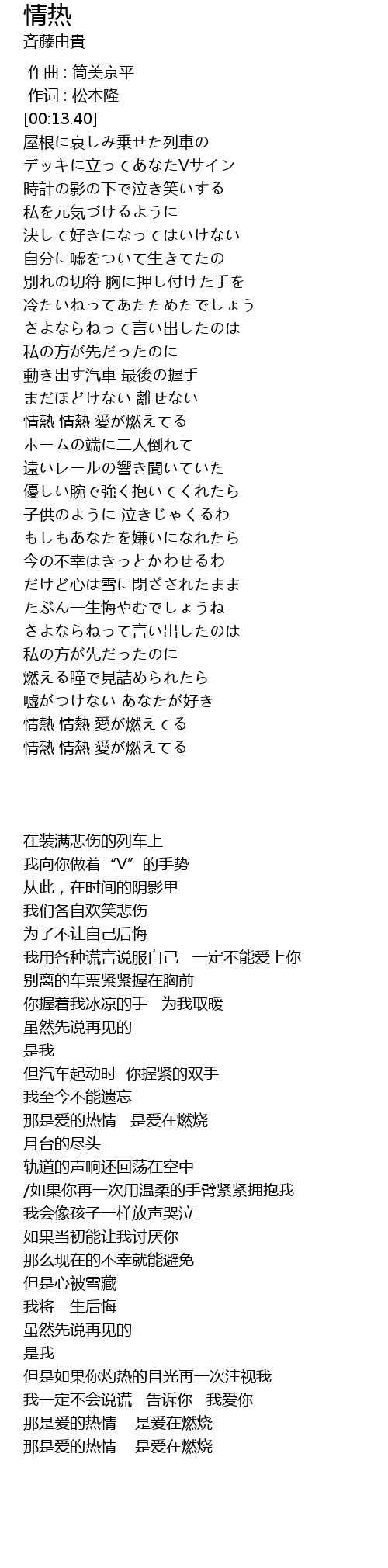 | [01:52.73] | qíng rè qíng rè ài rán |