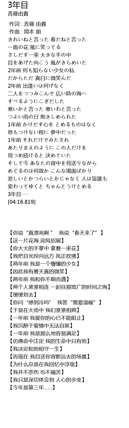 | [00:00.000] | 作词 : 斉藤 由貴 |