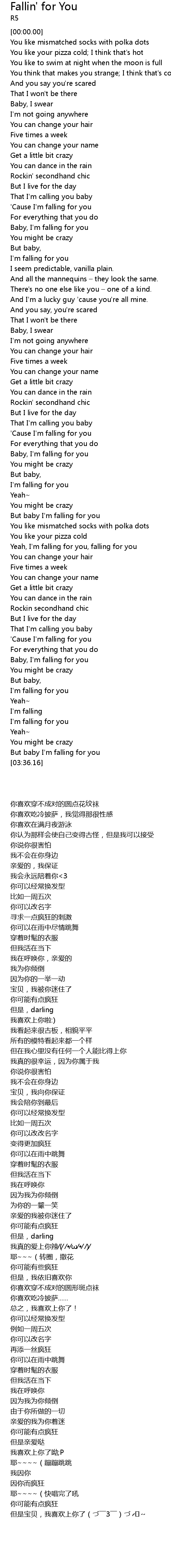 | [02:27.76] | Yeah, I' m falling for you, falling for you |
