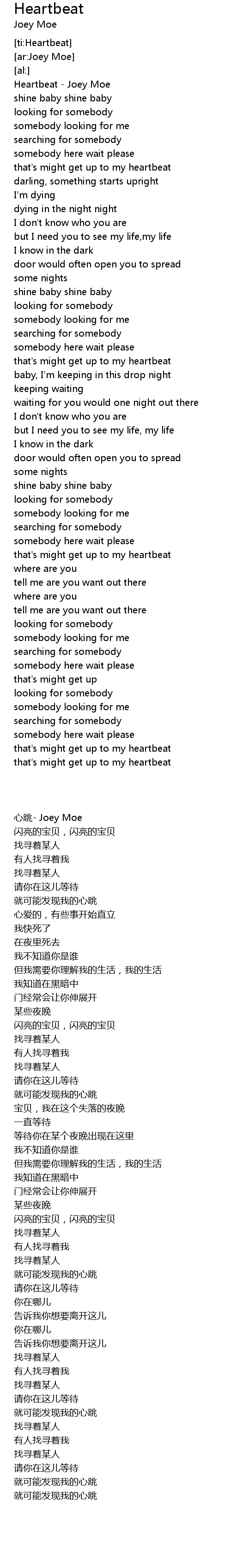 | [00:00.00] | Heartbeat - Joey Moe |