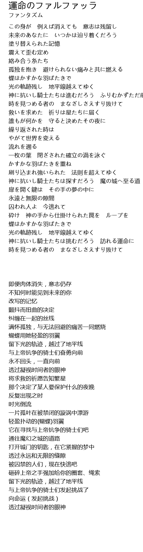 | Song | 運命のファルファッラ |