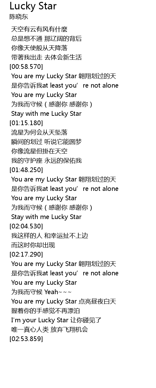 | [00:59.590] | You are my Lucky Star áo xiáng huá guò de tiān |