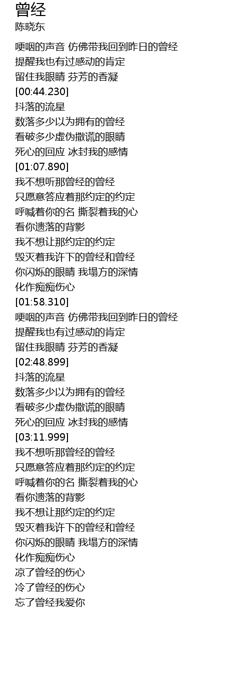 | [03:11.999] | 我不想听那曾经的曾经 |