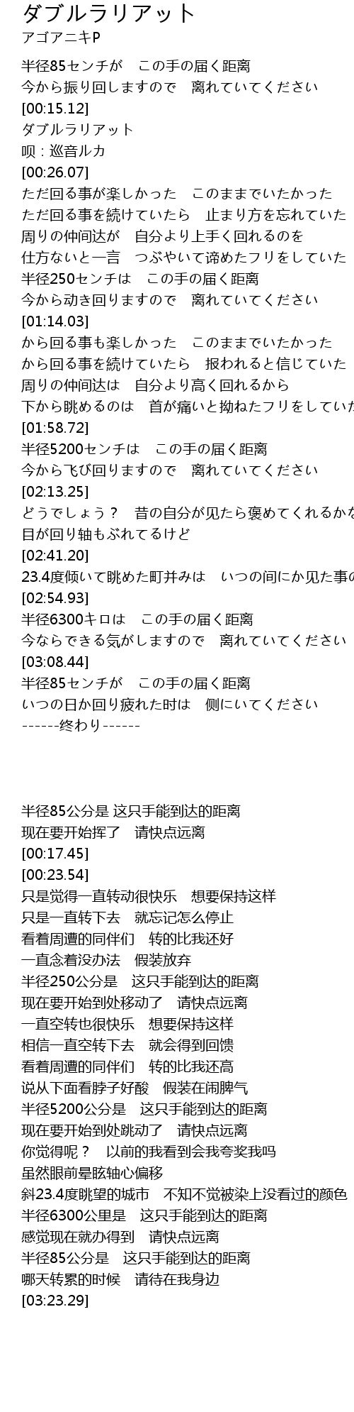 | [01:59.43] | 半径5200センチは この手の届く距离 |