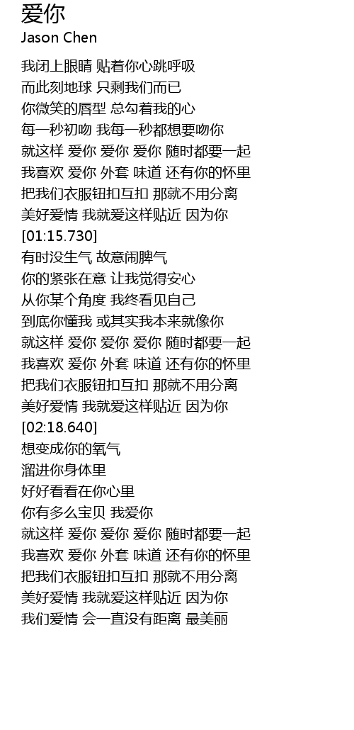 | [01:55.330] | 我喜欢 爱你 外套 味道 还有你的怀里 |