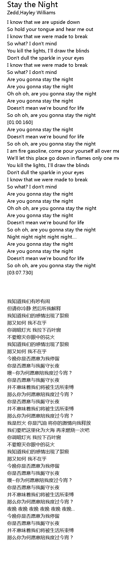 So oh oh, are you gonna stay the night |