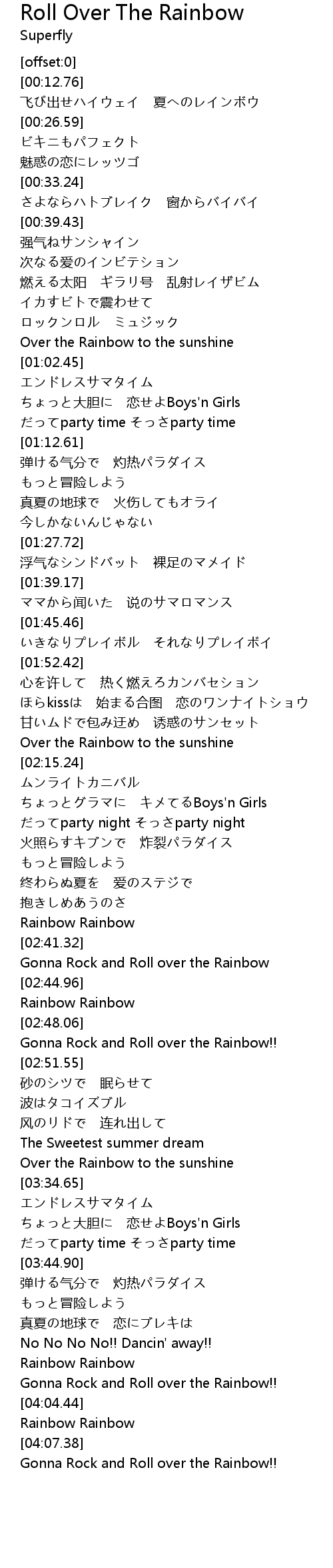 | [04:08.09] | Gonna Rock and Roll over the Rainbow!! |