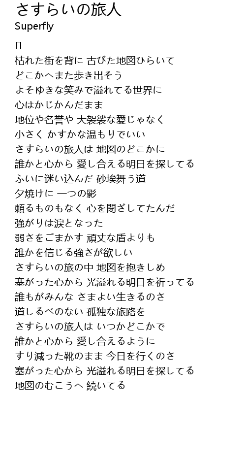 | Song | さすらいの旅人 |