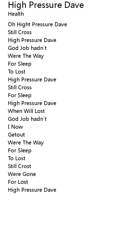 | Oh Hight Pressure Dave | |