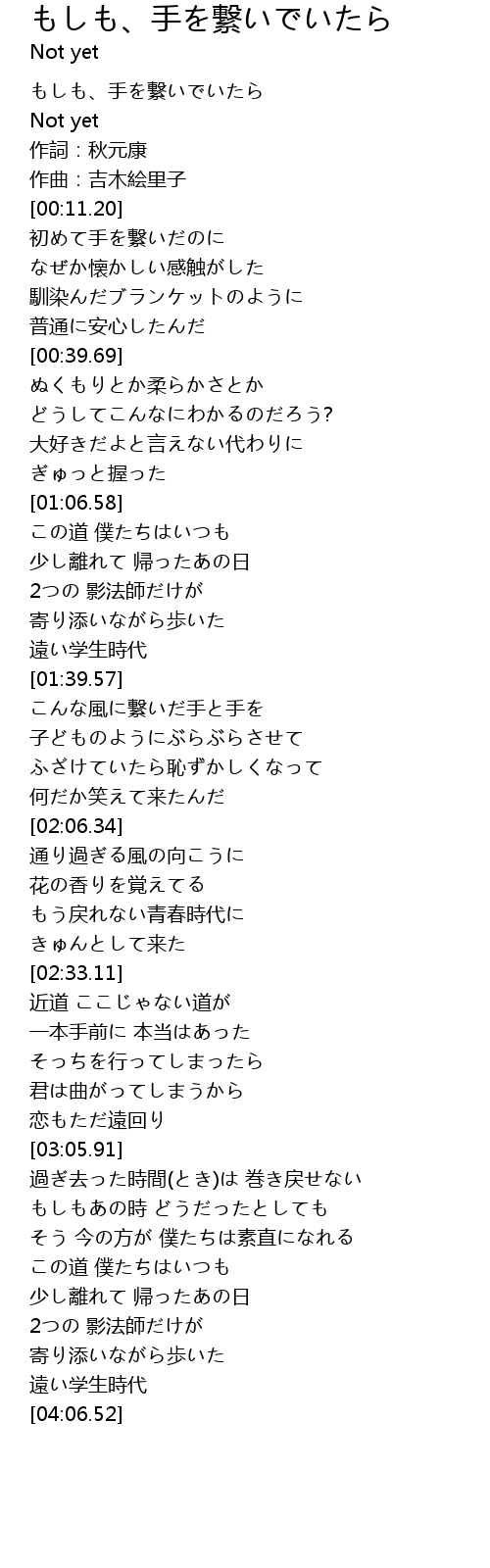 | [00:00.00] | もしも、手を繋いでいたら |