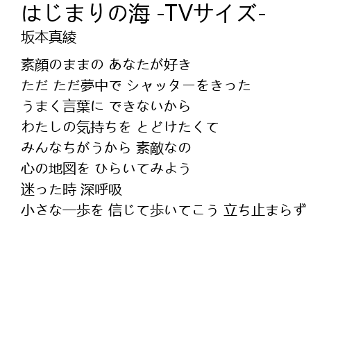 | Song | はじまりの海 -TVサイズ- |