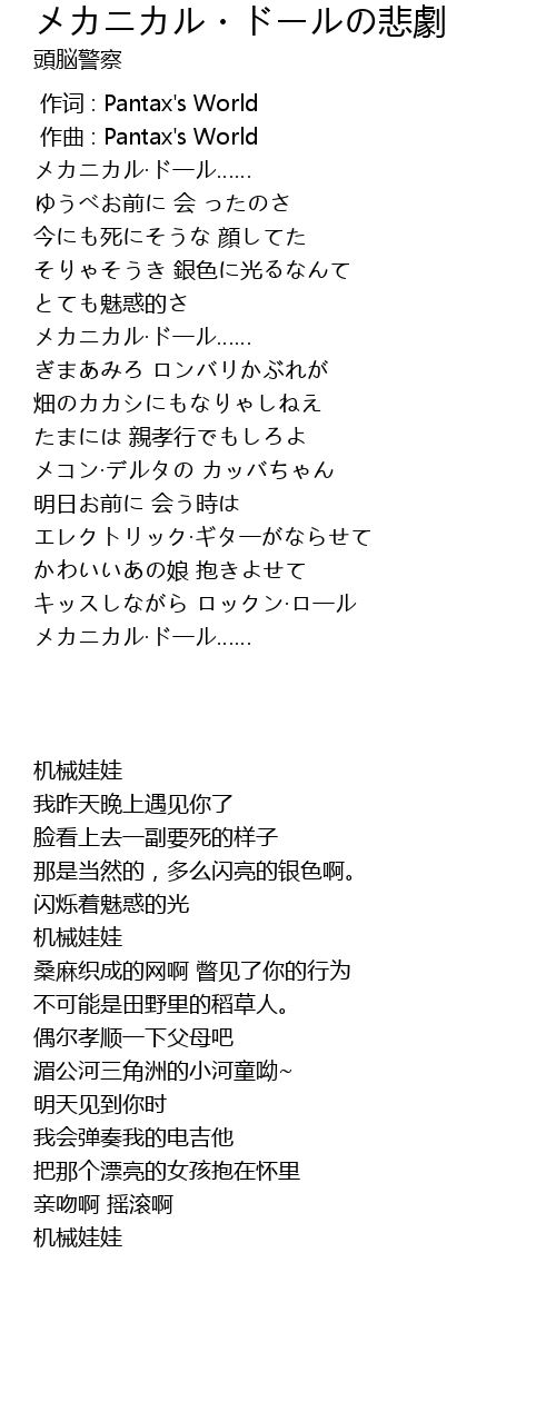 作词 : Pantax's World |
