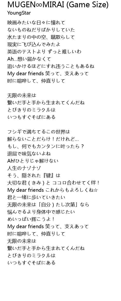 | Song | MUGEN∞MIRAI (Game Size) |