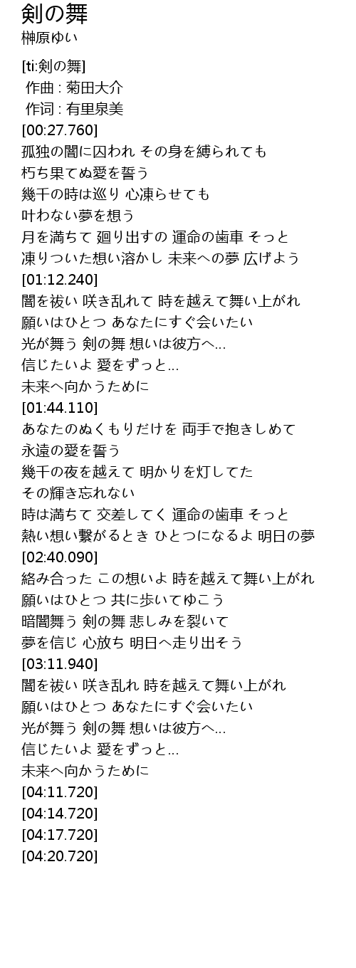 | [03:53.690] | 光が舞う 剣の舞 想いは彼方へ… |